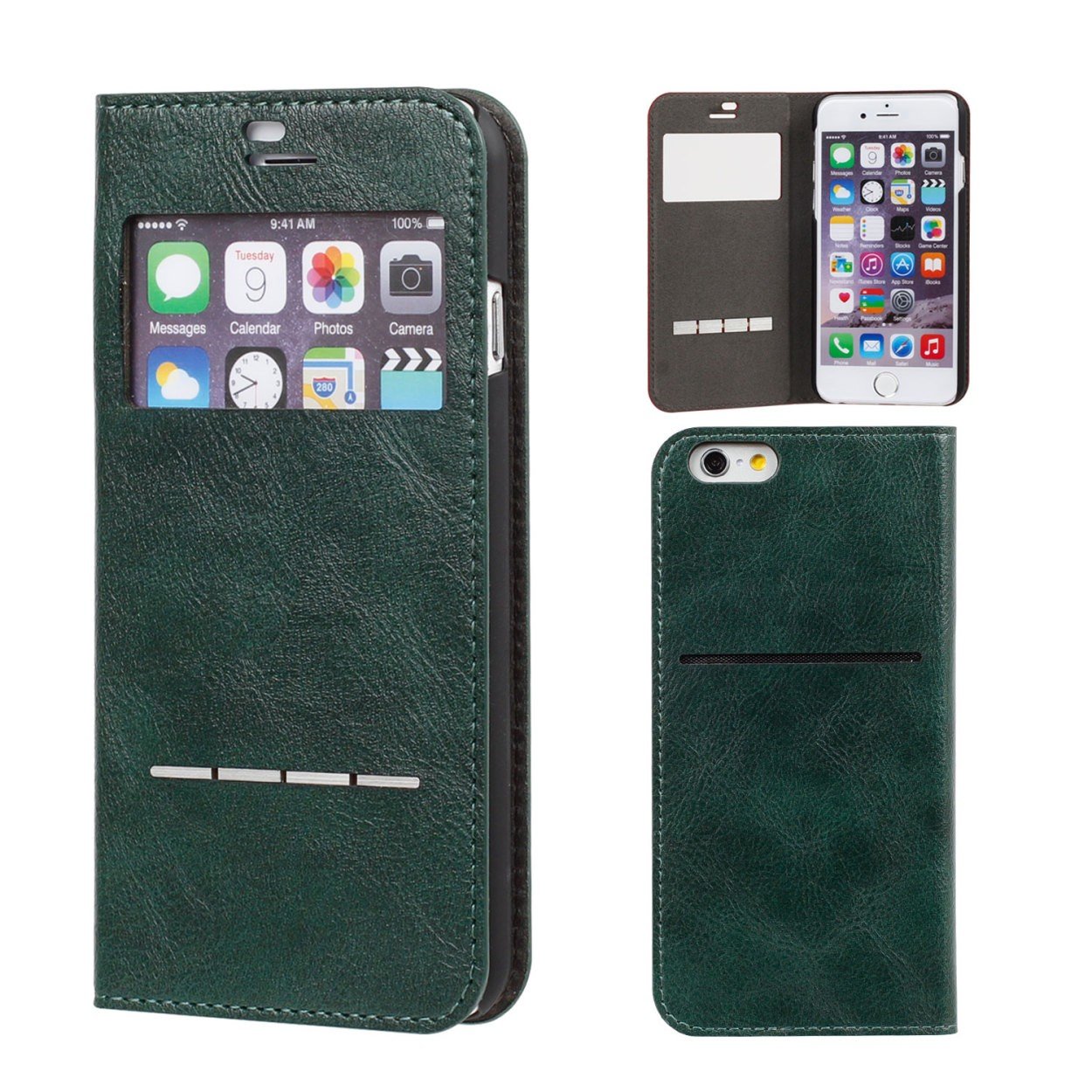 An elegant PU leather adopted "small window" which opened with luxury sense opened iPhone 7 notebook type case with window.