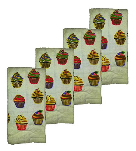 Set of 4 Kitchen Towels 100% Cotton 15" X 25" Seashell, Fruit, Garden, Harvest, Wine or Cupcakes (Cupcakes)