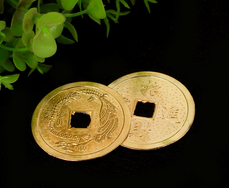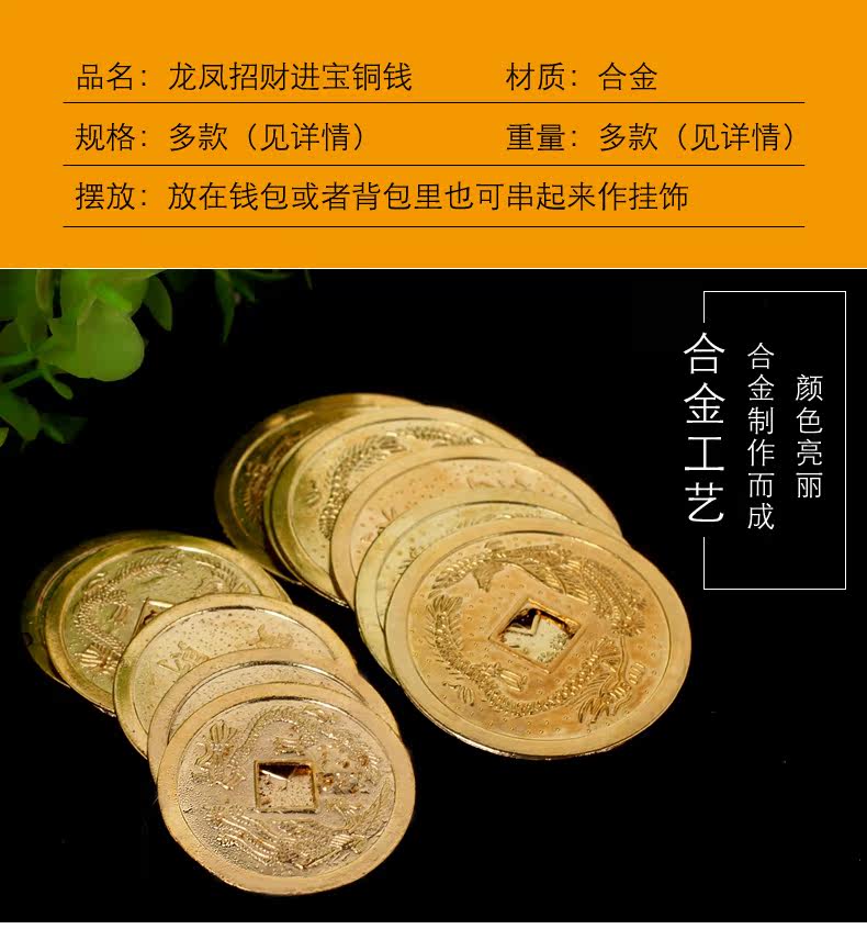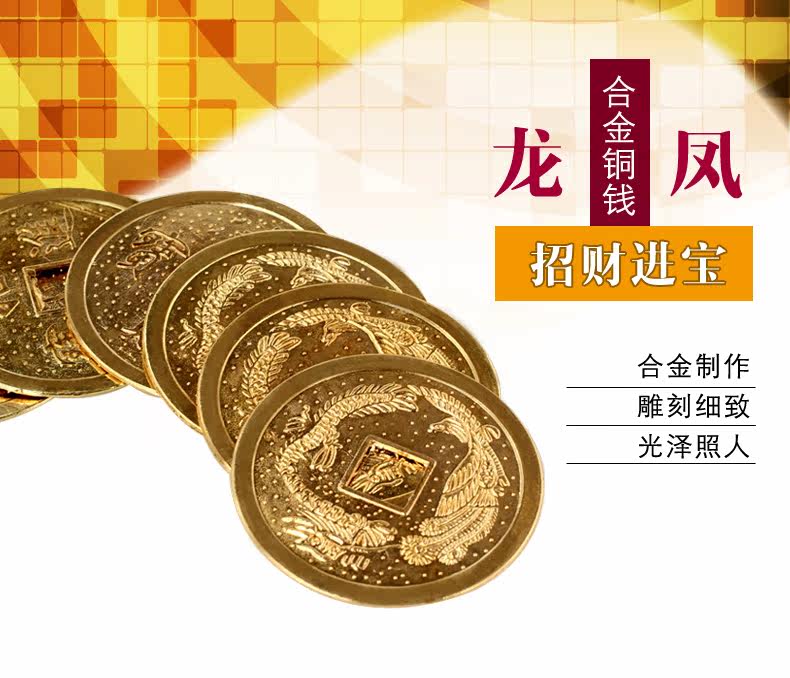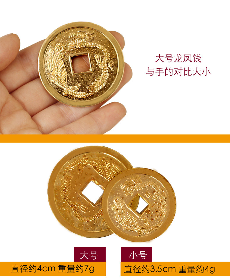 开光风水龙凤铜钱摆件招财进宝合金铜钱龙凤呈祥招财饰品