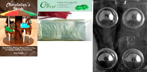 Cybrtrayd Snow Globe Chocolate Mold with Chocolatier's Bundle of 25 Cello Bags, 25 Red Twist Ties and Chocolatier's Guide