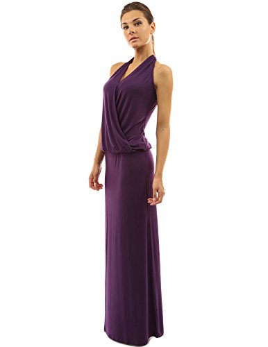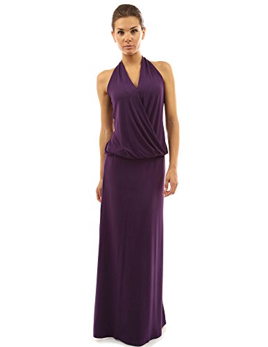 PattyBoutik Women's Halter Faux Wrap Blouson Maxi Dress