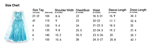 2T-3T: shoulder:8.6 chest/bust measurement:22 waist measurement:18.5-21 sleeve length:16.9 dress length:30.3