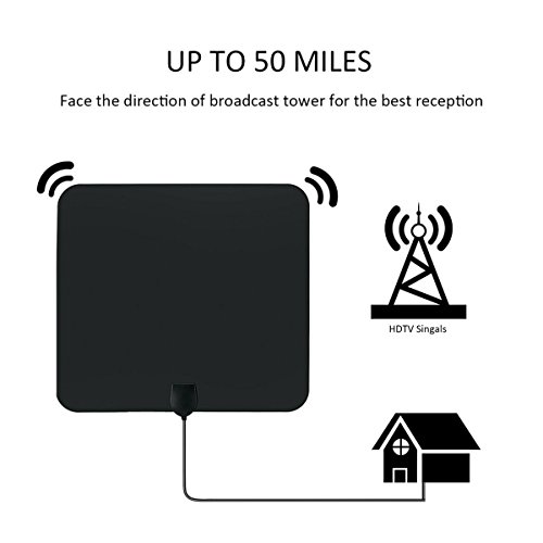 Electrisky Long Range 50Miles Amplified Indoor HDTV Antenna - Ultra thin aluminum TV antenna for digital TV indoor Fast and easy set up in 3 steps: a.Connect the antenna to"CABLE/ANT IN"on the back of any HDTV b.Place the antenna in an optimal position, usually on a wall or window(strongly recommend) c.Scan TV channels and be ready to enjoy free HD TV! Two really useful websites to find out what channels you should be able to get at your home 1. Antennaweb.org is run by the Consumer Electronics Association and the National Association of Broadcasters.The interface hasn't changed in over a decade, but it's simple and the information is useful. 2. TVFool.com is more complex, but gives a lot more detail including gorgeous plots of theoretical signal strength and where the broadcast towers are located. Tips: And if you're looking for a cable-style TV schedule, TitanTV.com is a free Web service that lists local programming. Specifications: Model Number: Electri-01 Frequency Range: VHF 47-240Mhz, UHF 470-862Mhz Receiving Range: FM/VHF/UHF Gain: 30dB with Amplifier Maximum Output Level: 100dBμV Impedance: 75Ω Noise Figure: ≤3dB Color:Black Package: 1* Electrisky TV Antenna 50Miles Range.( With FCC UL Certificate) 1* High Gain and Low Noise Signla Booster. 1* User Manual. 4* EVA Stickers. 0 |