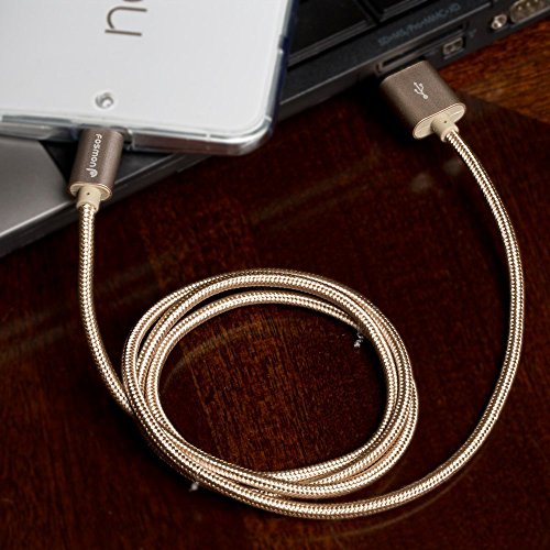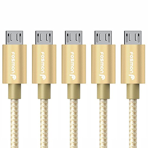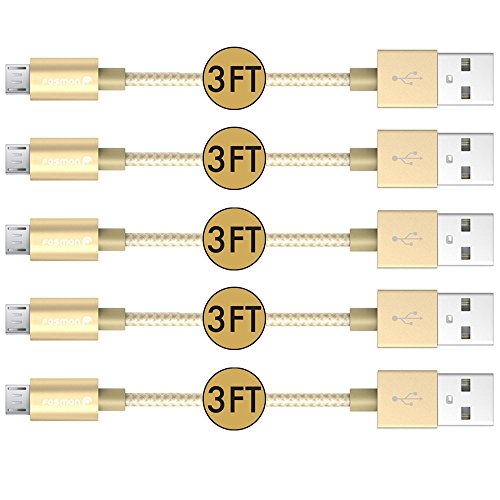 Fosmon (5 Packs - 3FT) High-Speed Micro USB to USB Sync & Charge Data Cable - [Fabric Braided Jacket | Aluminum Housing | 480Mbps Speed] for Samsung, Motorola, HTC, Nokia, LG, Google Nexus, Sony Xperia, OnePlus, Smartphones & Tablets (Gold)