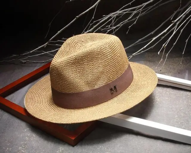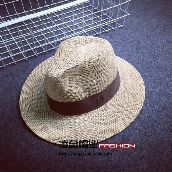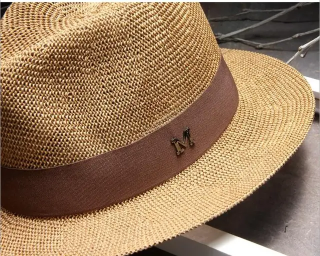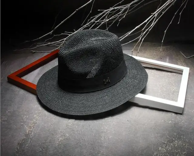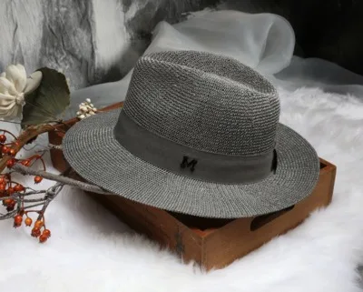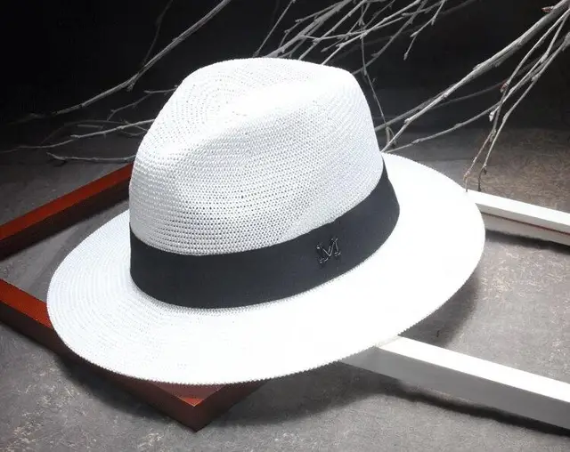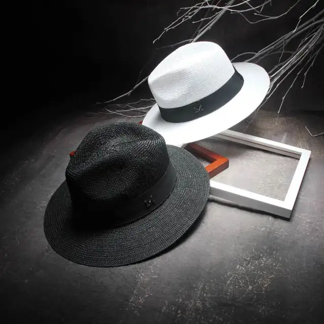 | [해외]우아한 블랙 재즈 모자 새로운 2016 화이트 태양 모자 남성 정장 블루 여름 해변 럭셔리 브랜드 편지 M 페도라 밀짚 모자 |