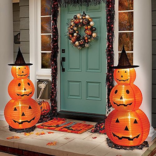 -. Brand : Halloween Direct -. Color : Orange, Black -. EAN : 0720061840000 -. Feature : Each stacker is sold separately / This Halloween decoration idea features 3 different-sized Jack O' Lanterns, one stack upon the other / A witch's hat sits atop the stock for added wickedness / Made of fabric and metal with 5 C7 lights, this pumpkin includes a 48" lead wire and ground stakes / 20"W x 20"D x 46"H, Corded Electric -. Label : Halloween Direct -. Manufacturer : Halloween Direct -. ProductGroup : Lawn & Patio -. ProductTypeName : OUTDOOR_LIVING -. Publisher : Halloween Direct -. Size : 20"W x 20"D x 46"H -. Studio : Halloween Direct -. Title : Jack O' Lantern Pumpkin Stacker w/Witch Hat Outdoor Lighted Porch Yard Halloween Decoration Prop Kid Friendly -. UPC : 720061840000