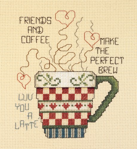 Janlynn Cross Stitch Kit, 5-Inch by 6-Inch, Friends and Coffee