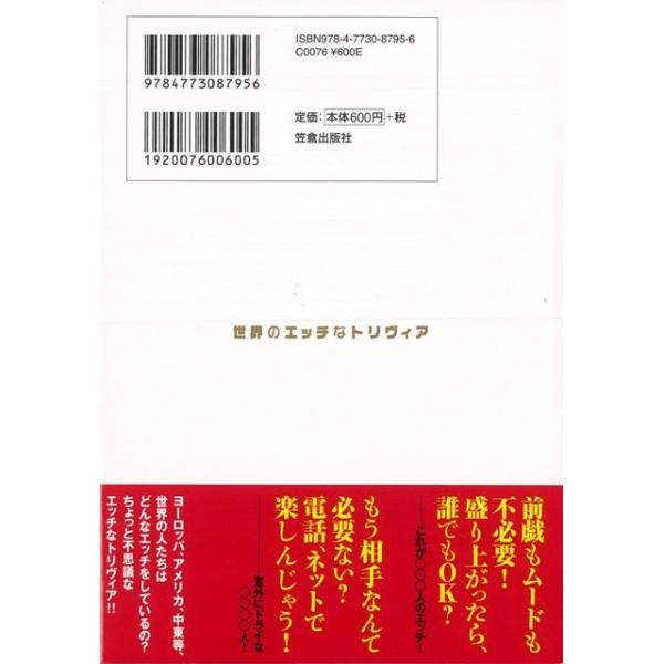 【商品基本情報】 商品名称:世界のエッチなトリヴィア 著者/出版社:石原 行雄/石原 行雄 初版発行日:2015/08/23 サイズ:B6判 ページ数:223 ISBN/JAN:9784773087956/4528189471634