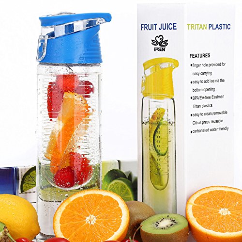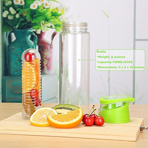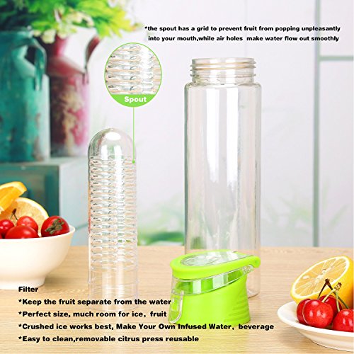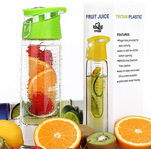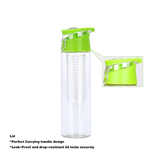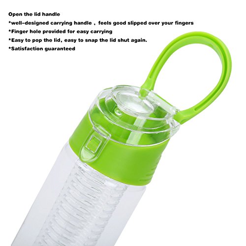 FGN Sport Water Bottle with Fruit Infuser and Carrying Handle,with Locking Flip Top Lid, BPA FREE -23 Oz-made with Tritan Copolyester--perfect for Travel,yoga,office and Around Town - Green