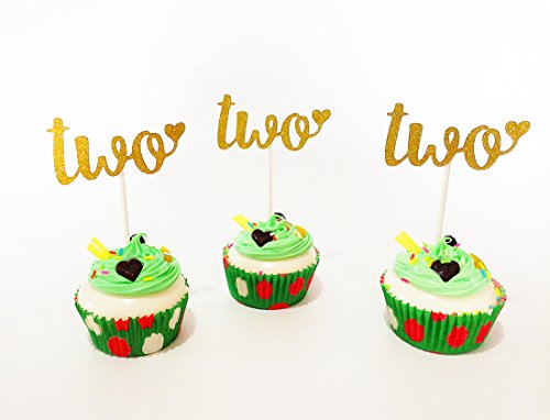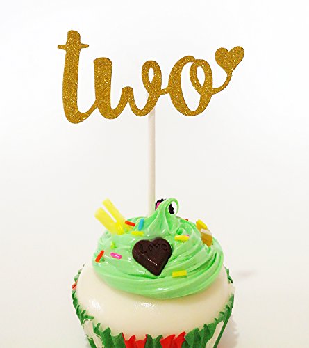"Two" Cupcake Topper, Set of 12 Golden Glitter Cupcake Toppers -Cupcake Topper Birthday Decoration