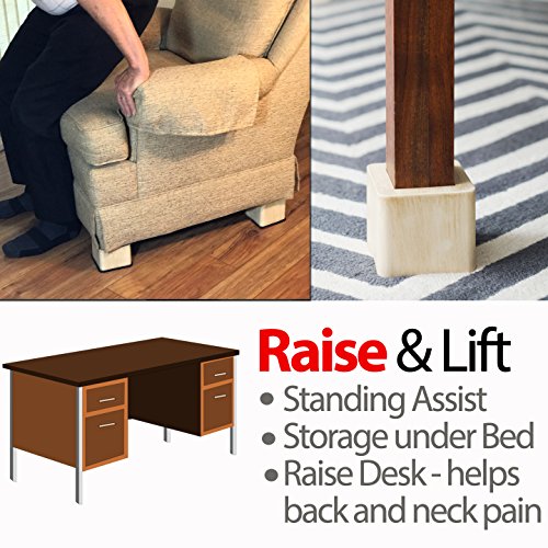 ✅ STABLE SQUARE DESIGN & EZ Vacuum: Square Design is Easier to Vacuum next to versus Round Designs. Lifts Extra Heavy Bed, Living Room Furniture, Desk Raiser, and Home Office Furniture. Stand Assist - Raise Height of Chair to Stand Up Easier.
