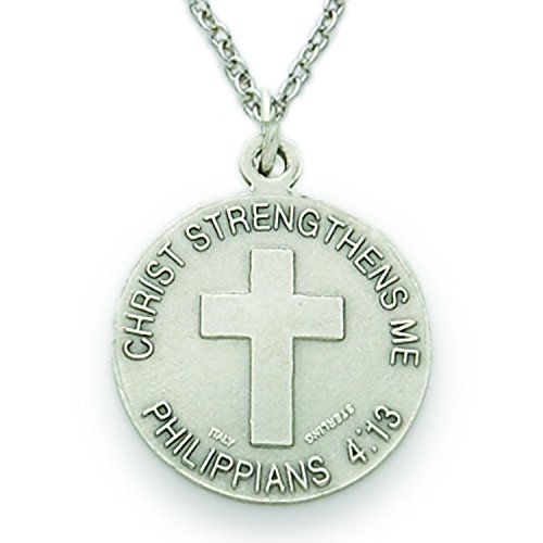 -. Feature : Medal - Sterling Silver - 3/4 Inch / Chain - 20 Inch Stainless Steel with Rhodium Finish - Lobster Claw Clasp / Comes in Jewelry Gift Box