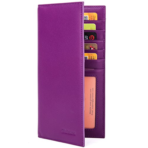 -. Feature : Slim and minimalist design, a good ideal for card-organization, suits to most purses and handbags / Measures 7 x 3.42 inches (17.7 x 8.7 cm), holds 9+ cards plus 15+ US bills with no bulk / 9 card slots (include 1 ID window), 2 interior pockets , a small size slot for little stuff / Elegant flip book-style, with RFID blocking / Made from top-grain cowhide leather and Covered by our 2 years warranty