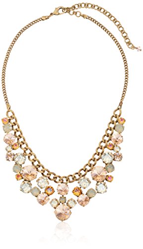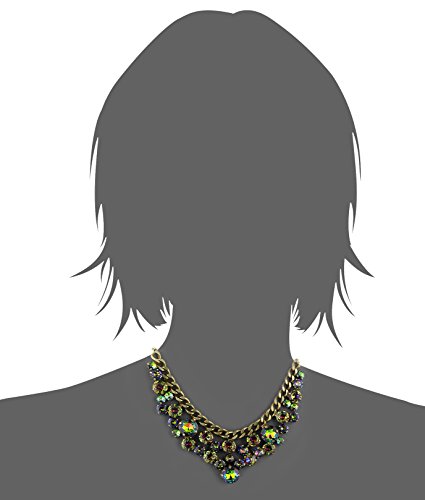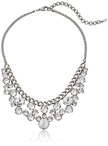 Antique silver-tone chain-link necklace featuring bib with clusters of round Swarovski crystals