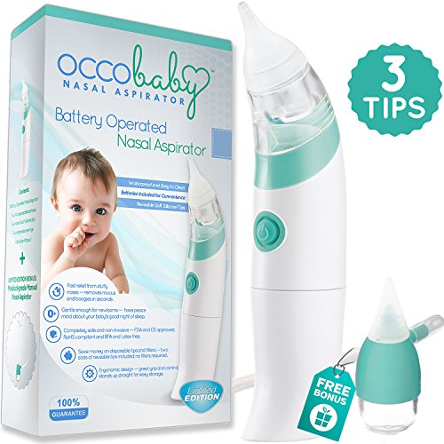 OCCObaby Baby Nasal Aspirator - Safe Hygienic and Quick Battery Operated Nose Cleaner with 3 Sizes of Nose Tips and Oral Snot Sucker for Newborns and...