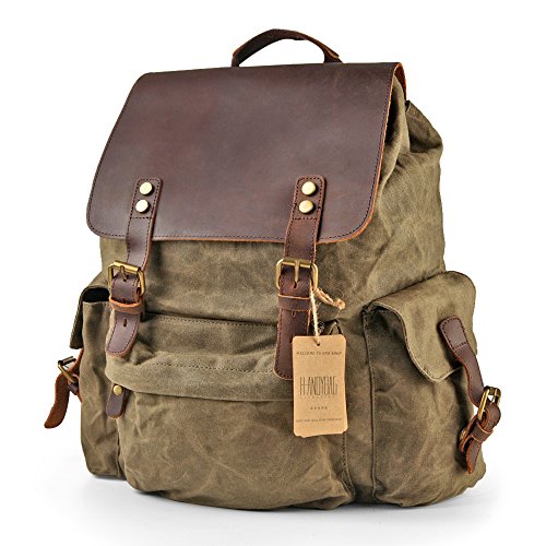 -. Title : H-ANDYBAG Waxed Canvas Bag Rucksack Backpack Men 15.6 Inch Laptop