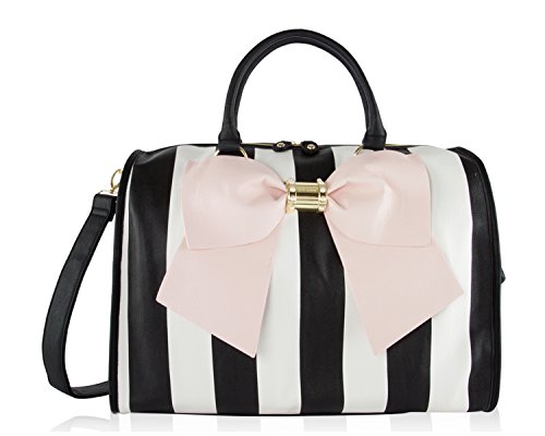 -. Brand : Betsey Johnson -. Department : womens -. Feature : Floral PVC Exterior, Front zip pocket and signature logo plate / Top Zip Closure, Side slip pockets adorned with big black bows / Dual top handles 10", Detachable adjustable cross-body shoulder strap 23" drop / Opens to fully lined Rose print interior with wall zipper pocket and 2 slip pockets / Overnighter Bag Measures: 20 "x 11" x 10" (WxHxD) -. Model : BMW1190 -. ProductGroup : Apparel -. ProductTypeName : LUGGAGE -. Size : One Size -. Title : Betsey Johnson Quilted Heart Carry On Weekender Travel Duffel Bag