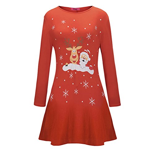-. Feature : Novelty Christmas theme is the long lasting clothing style,at any time and occasion are suitable for women/girls wear / These Christmas Swing Dresses are Perfect for Christmas Eve,Parties & festive season / These Swing Dresses are available in Multi-Inspired Colours,P.R.Ints & have different Sizes to make every one easy to pick one suitable.Team with tights or bare legs & boots for perfect look / Soft, Stretchy and Comfortable Material which is Ideal for All Occasions / Size - Asian size smaller than your thinking, please choose the larger size and refer to the third picture (size chart) we provide.