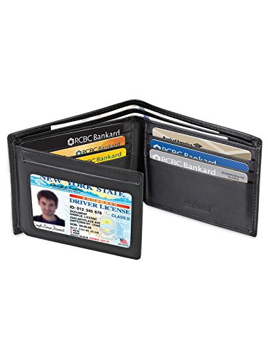 -. Binding : Apparel -. Brand : Kinzd -. ClothingSize : one size -. Department : mens -. Feature : Measures: 4.6" x 3.6" x 0.6" (11.7cm x 9.1cm x 1.5cm) / 9 card slots, 3 slip-in pockets, 1 ID window and 2 bill compartments / RFID Blocking Wallet: Keeps your vital information in cards from being stolen. Does Block 13.56 MHz Frequency (Credit cards, debit cards, driver license and ID cards); Does NOT Block 125 KHz signal (ID badge, access cards and hotel room cards). / Bifold wallet with a trifold flip out ID window, convenient for showing identity such as driver license. / Humanized card slots design, keep all cards snug in the pockets, and easy for each card in and out. -. Model : AS147 -. MPN : AS147 -. PartNumber : AS147 -. ProductGroup : Apparel -. ProductTypeName : ACCESSORY -. Size : One Size -. Title : Mens Trifold Wallet Card Holder RFID Wallet Extra Capacity Bifold Trifold Hybrid