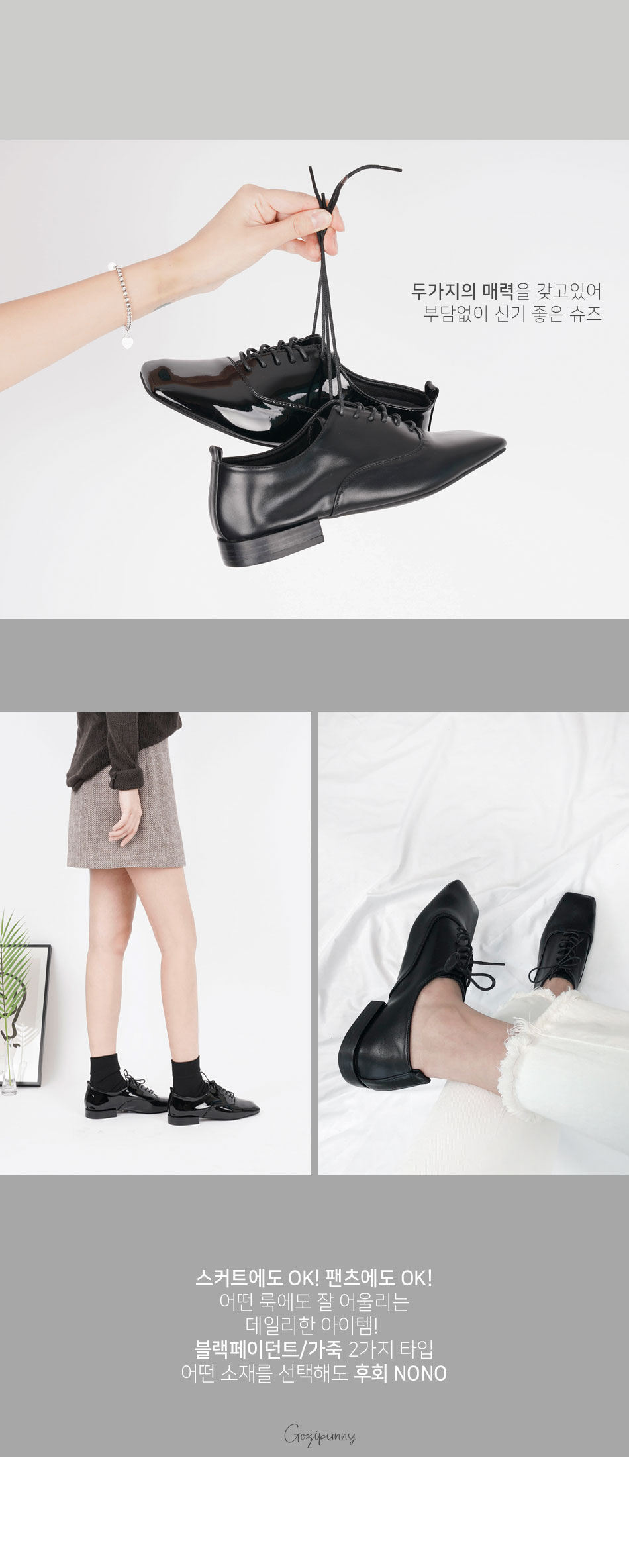 앞코가 네모 해서 기본 베이직한 느낌에서 디자인감을 더한 슈즈!