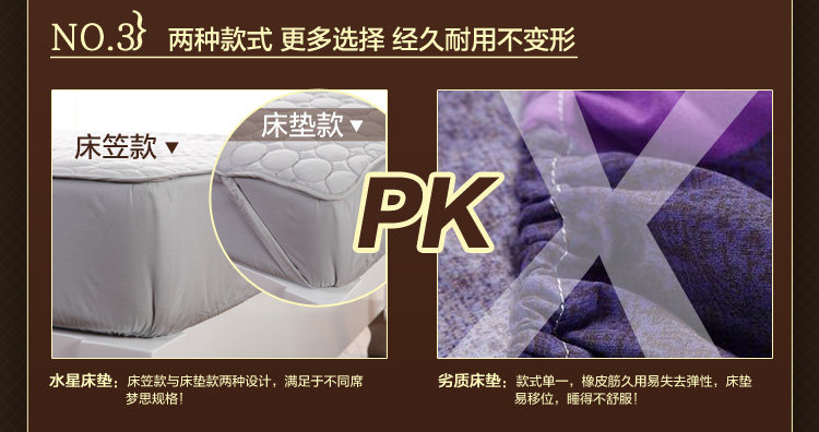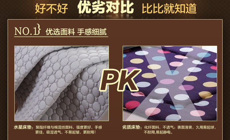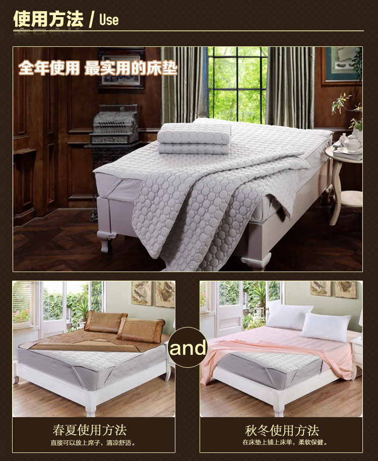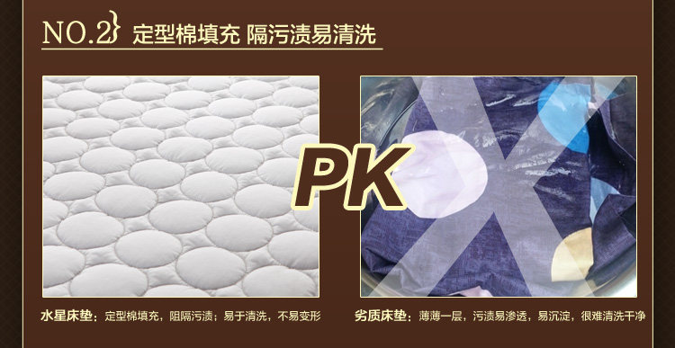| The commodity brand mercury Hometextile | Name of commodity Shu soft bed pad (mattress section (paragraph) fitted sheet) | Article number 501014501015501016 501017501018501019 | Commodity specification 120*200cm | 150*200cm | 180*200cm | The implementation of the standard Q TIZY 3 GB 18401 C class commercial grade qualified products | The weight of the commodity product net weight: 1300g packaging tape: 1420g (1.5m mattress section) | Product net weight: 1570g packaging tape: 1690g (1.8m mattress section) | Product net weight: 1460g packaging tape: 1580g (1.5m mattress section) | Product net weight: 1600g packaging tape: 1720g (1.8m fitted sheet section) | The production process of goods fabric 65% polyester, 35% cotton | Component content of 100% polyester fiber | Packing details mattress *1 package *1 |
