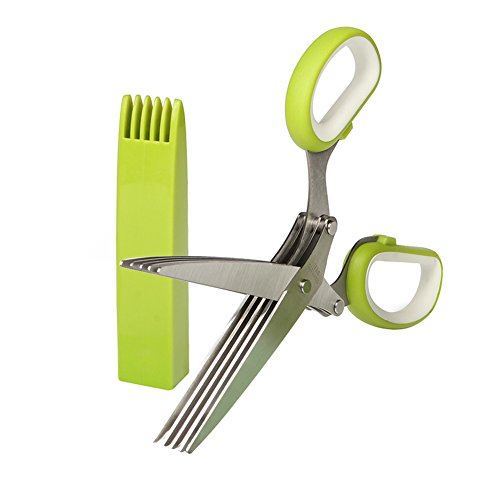 부엌에서 이와 같은 chef-quality허브 가위는 절약하기 위한 효율적에,구용으로 설계.1로 구성되어 있습니다. 5개의 블레이드,3인치 식품 그레이드의 스테인레스강부터 만들어져 준비에 항상 안전하게 사용하기위해 하여 봅니다.2로 구성되어 있습니다. 식기 세척기도 대응,클린 업은 간단합니다 3.3개가 튼튼한 스틸 리벳에 블레이드를 확실히 배치 실행을 사용해 된 생애 사용되어 있습니다. 4.경량으로 인간공학 플라스틱 핸들 기능이 있는 실리콘이 삽입 이상 탑재한 쾌적함을 제공합니다.5를 참조해 하십시오.보존으로,구시간에 의해조리가 보다 효율적에 즐겁다. 크기와 중량: 7.8?* 3.2?* 0.8인치160?g