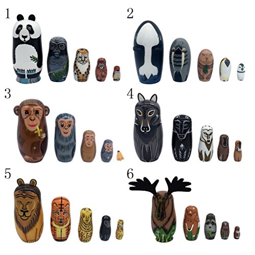 A matryoshka doll, also known as a Russian Nesting Doll, or Russian Doll, is a set of wooden dolls of decreasing size placed one inside another. A set of matryoshkas consists of a wooden figure which separates, top from bottom, to reveal a smaller figure of the same sort inside, which has, in turn, another figure inside of it, and so on. Please note: 1. Dolls listings might vary slightly from the photo as they are each hand painted. 2. Not recommended for kids under 3 years due to small parts inside. Package Includes: 1 Set of 5 Dolls