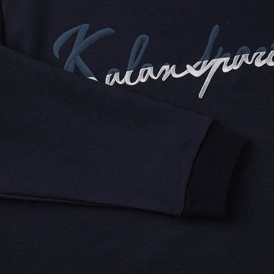 - 가슴부분에 자수와 프린트를 믹스한 로고 포인트를 적용한 남여공용
