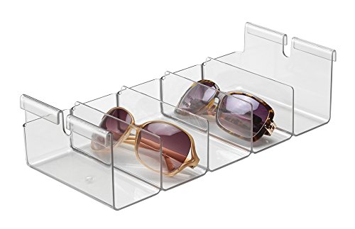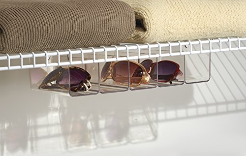 - Feature : Perfect for closets, pantries, garages, laundry rooms and craft rooms - anywhere you have wire shelving! / Works on most wire shelving systems, including Rubbermaid, Closet Maid and Elfa / Great for storing sunglasses, eyeglasses, clutch purses, tools, spice packets, dry goods, craft supplies and more / Made of durable, clear Resipreme plastic; BPA-free, food safe, recyclable / 14.5" x 6.25" x 3.75"