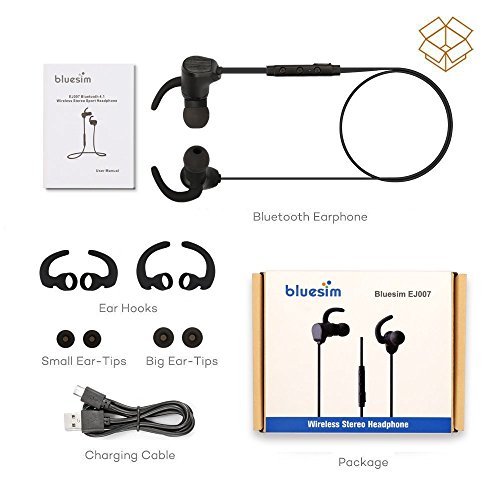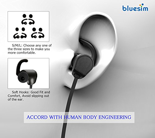 Bluetooth Headphones Bluesim Wireless Bluetooth 4.1 Sport Headphones, Noise Cancelling In-ear Earphones, Lightweight Headset with Mic and Volume Control for Running Jogging Workout for iphone, Black