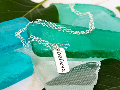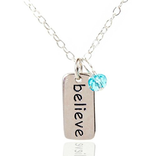 -. Binding : Jewelry -. Brand : Efy Tal Jewelry -. Department : womens -. Feature : MATERIALS: 925 Sterling Silver. Great quality to last a lifetime. This will not turn your skin green or red or itchy :) it's the real deal, using sterling silver from the most reputable silver supplier in the country. The chain is dainty but strong. It will not break on you. Efy Tal Jewelry (the manufacturer) will always replace it for you if needed. The chain is packaged in a special way so that it will not arrive tangled. The word Believe on the pendant is dark and easy to read. / THE MEANING: A beautiful and constant reminder to wear around her neck of the strong power of belief and faith that will carry her through each day and remind her of you. This thoughtful gift comes beautifully gift wrapped and ready for gift giving. / MANUFACTURER GUARANTEE: 2 year manufacturer warranty on chain / HANDCRAFTED IN THE USA: in the Efy Tal Jewelry studio in Glen Rock New Jersey. / LENGTH AND SIZE: 18" - this length looks great on most women of any age. If you ever need an adjustment (longer or shorter) Efy Tal Jewelry will adjust it for free. This solid sterling silver rectangle pendant is small and dainty but thick and has a nice weight to it. Please see picture on model to see the scale. The gorgeous blue sparkly bead is a lovely pop of color that works with any skin tone and any outfit. -. Label : Efy Tal Jewelry -. Manufacturer : Efy Tal Jewelry -. Model : Silver_Belive_Tag_Necklace_BlueBead -. MPN : Silver_Belive_Tag_Necklace_BlueBead -. PartNumber : Silver_Belive_Tag_Necklace_BlueBead -. ProductGroup : Jewelry -. ProductTypeName : FASHIONNECKLACEBRACELETANKLET -. Publisher : Efy Tal Jewelry -. Studio : Efy Tal Jewelry -. Title : Sterling Silver Believe Tag Necklace With Blue Sparkly Bead, Spiritual Inspirational Message Pendant, 18"