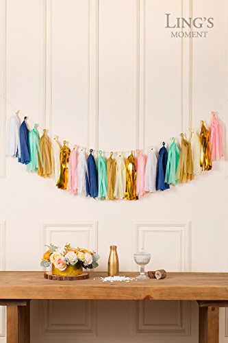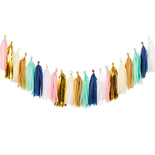 Ling's moment 21 PCS Tissue Paper Tassels, Tassel Garland Banner for Wedding, Baby Shower, Event & Party Supplies, DIY Kits