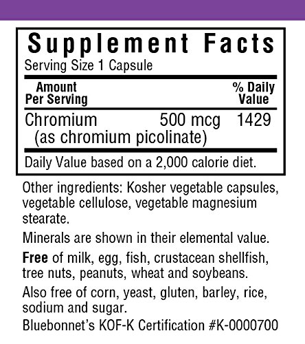 500 mcg of elemental chromium from chromium picolinate per vegetarian capsule