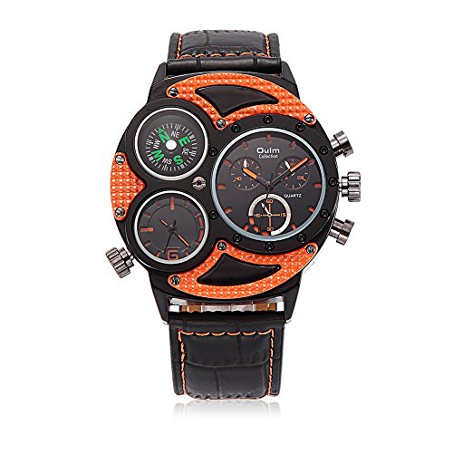 원본상품명: Rockyu ブランド 人? 腕時計 メンズ レディ?ス 羅針盤 ウォッチ カジュアル サファイアガラス ブラック レザ? 革 バンド (オレンジ文字盤) [?行輸入品]