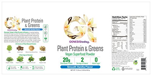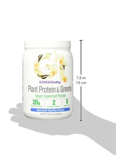 This powder has an additional 2 servings of greens for optimal nutrition This protein powder is vanilla flavored This protein powder is considered a superfood Brand : GENESIS TODAY MPN(PartNumber) : GT6900 EAN : 0812711016900 Product Dimensions(LxWxH) : 19x13x13cm ; 612 g Package Dimensions(LxWxH) : 19x13x12cm ; 612 g