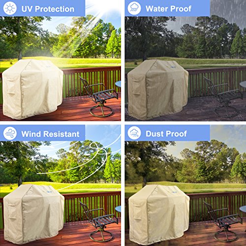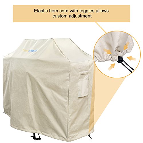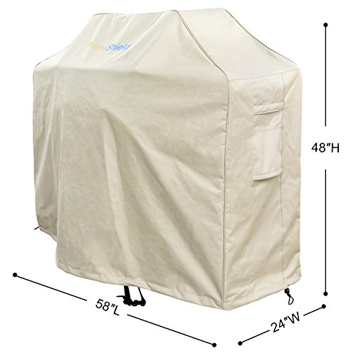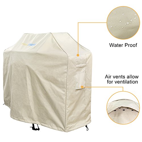 PrimeShield 600D BBQ Grill Cover, 58-inch Heavy Duty Waterproof Grill Cover with Air Vents and Handles for Weber Char-broil Brinkmann Holland and Jenn Air - Sand