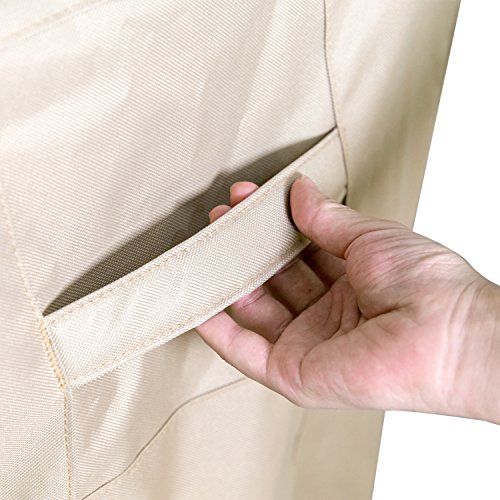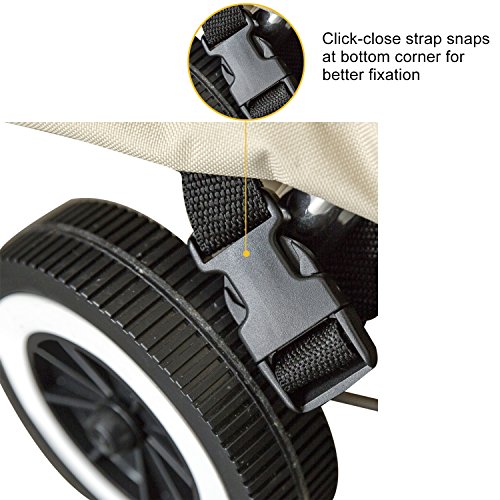 Air vents allow for ventilation and click-close strap snaps at bottom corner for better fixation, wind resistant. Elastic hem cord with toggles allows custom adjustment. Easily place and remove cover using convenient side handles