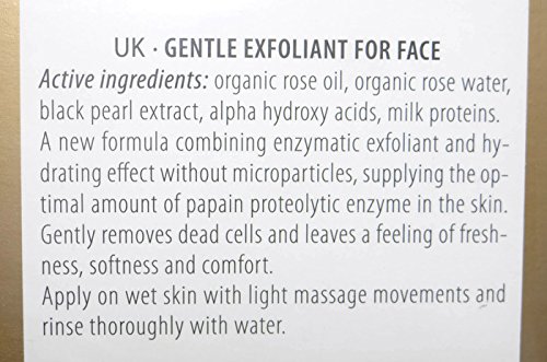 Organic rose oil, organic rose water, black pearl extract, alpha-hydroxy acids, milk proteins