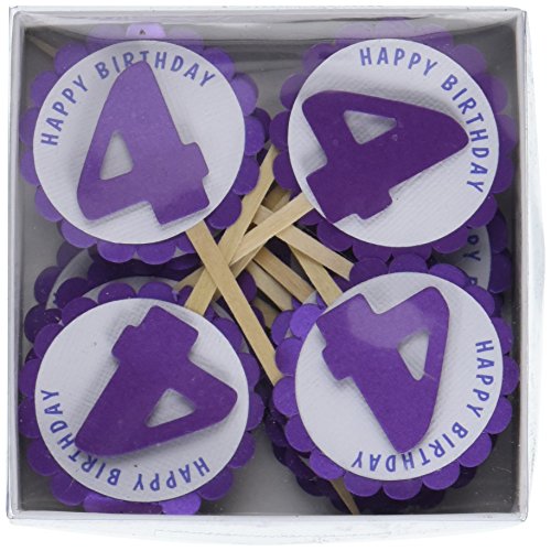 All About Details Shimmer Purple 4th Birthday Cupcake Toppers, Set of 12