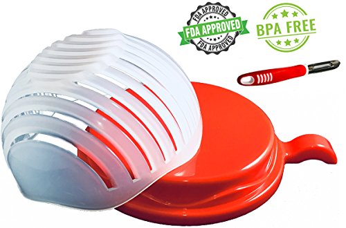 Complete with Peeler – What good is a salad cutter bowl if you’re wasting time peeling with a knife? With every purchase you will also receive a matching red peeler so that making salads is as quick and easy as advertised.
