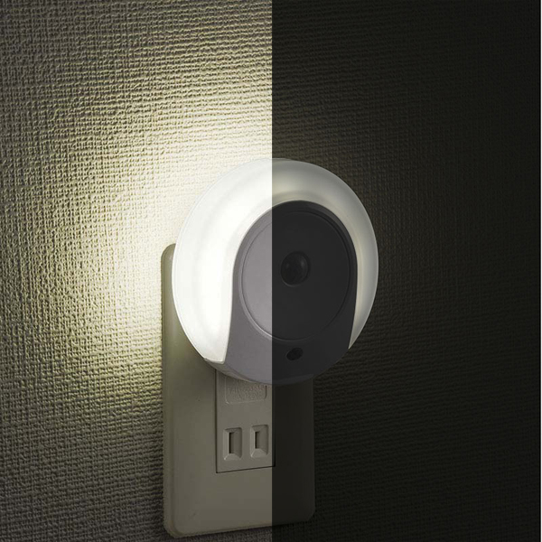 ●暗くなって、人が近づくと、約20秒間自動点灯する明暗・人感センサー付ナイトライト