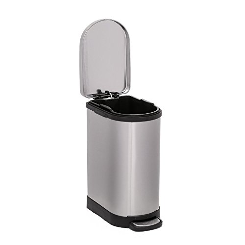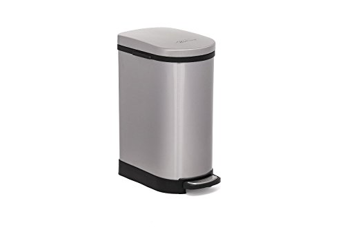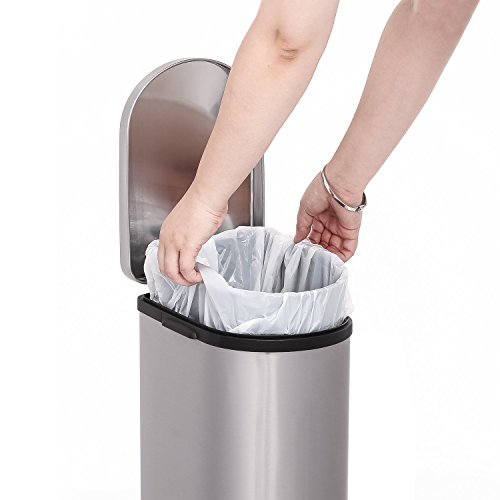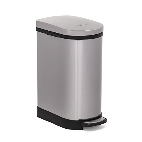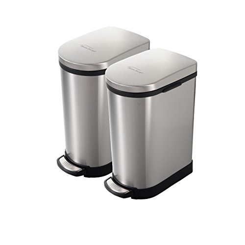 Heim Concept 2 Pieces Set Step Trash Can with Slow Down Close, 2.6 Gallon, Brushed Stainless Steel
