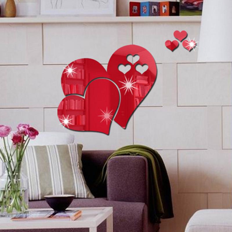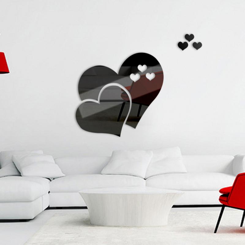 3D Acrylic Mirror Wall Sticker Heart Shape Removable Art DIY Home Room Art Mural Decor