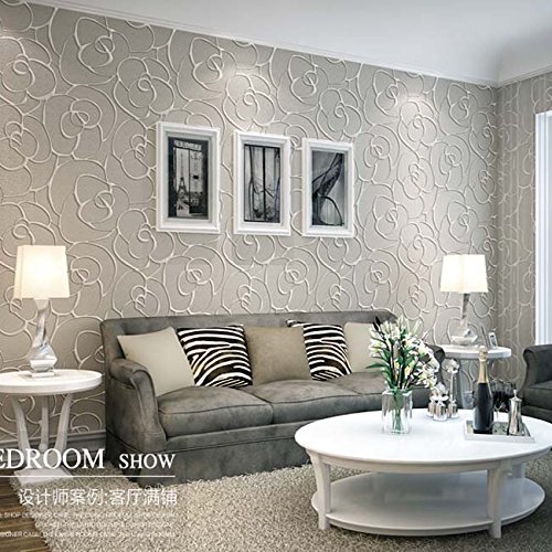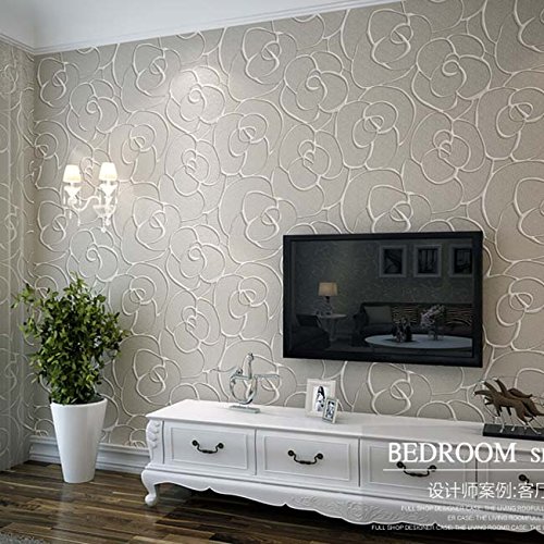 -. Title : QIHANG Modern Minimalist Embossed 3D Rose Flower Non-woven Wallpaper Cream&Gray Color 0.53m(1.738' W) x 10m(32.8' L)=5.3㎡(57 sq.ft)