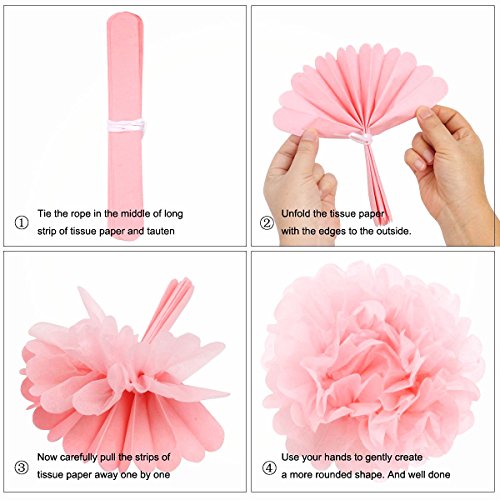 🌺🌺9 PAPER FLOWERS: 3 color of tissue paper flowers: Mint Green, Pink and White. 3pcs of each color come in size 8inch, 10 inch, 12 inch. The color of this kit is cozy, romantic, soft and lovely, perfect for all kinds of celebration party.