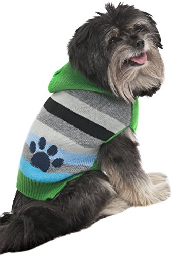 (Fashion Pet)/Pet Supplies/Apparel Accessories/DIRECT FROM USA/[애견의류,애견옷] Fashion Pet Stripes and Paw Print Dog Hoodie, X-Small, Green