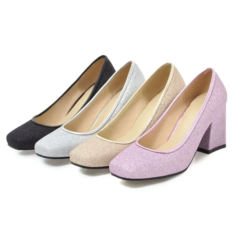 Product name:square toe thick high heel pumps shoes