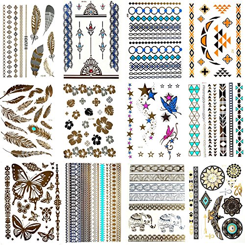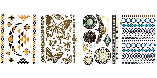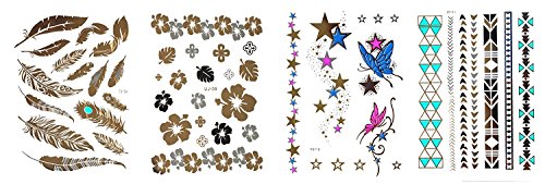 Lola Tatt 12 Premium Sheets of Metallic Temporary Flash Tattoos Gold, Silver and Multi-Colored.