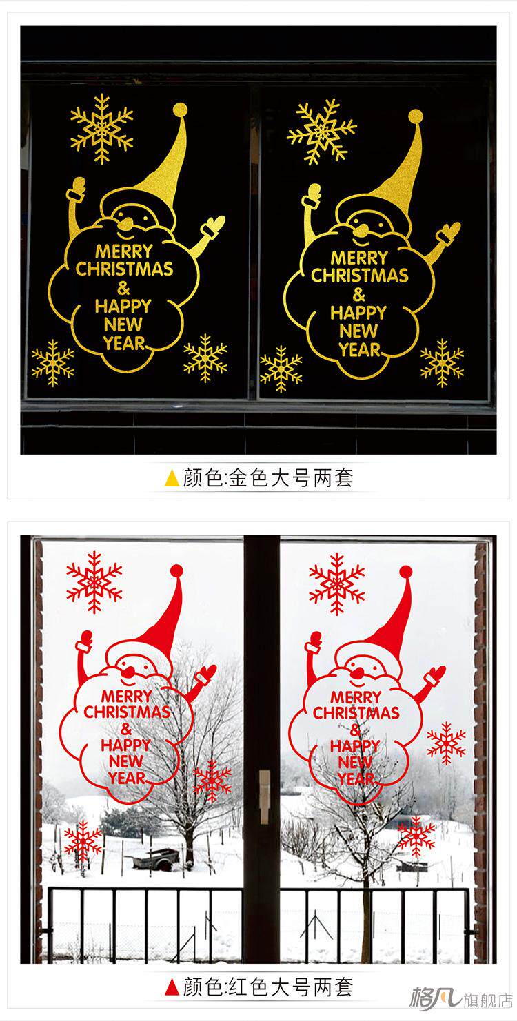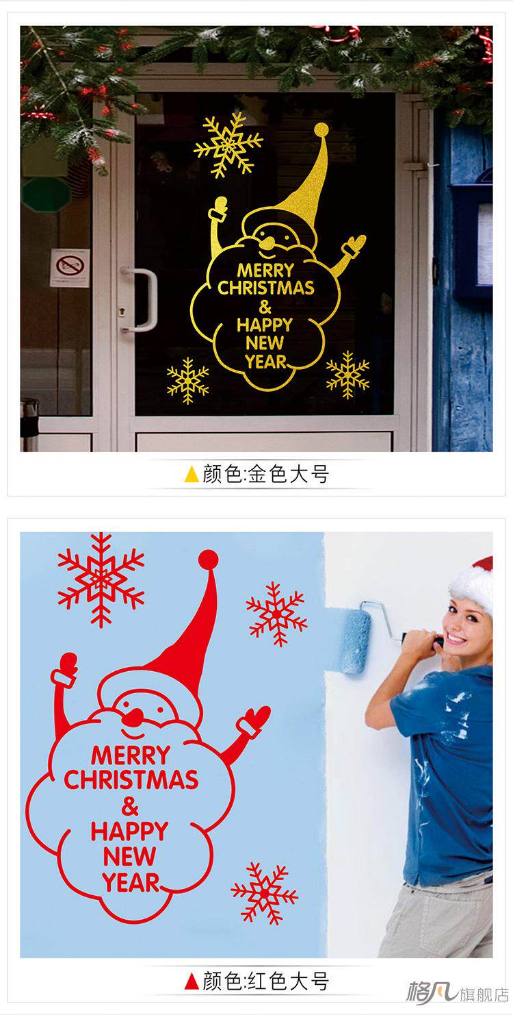 大型圣诞节墙贴纸店铺玻璃门橱窗贴画布置装饰品雪人圣诞老人雪花