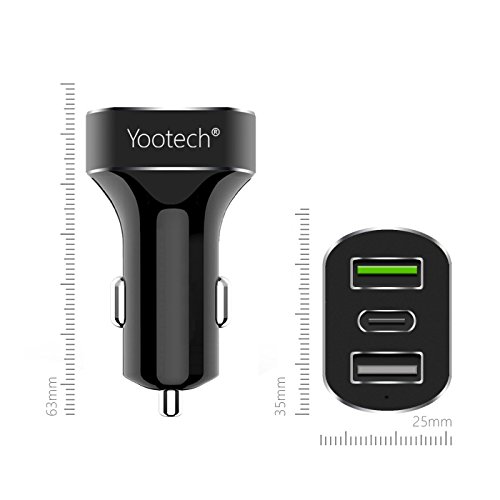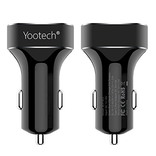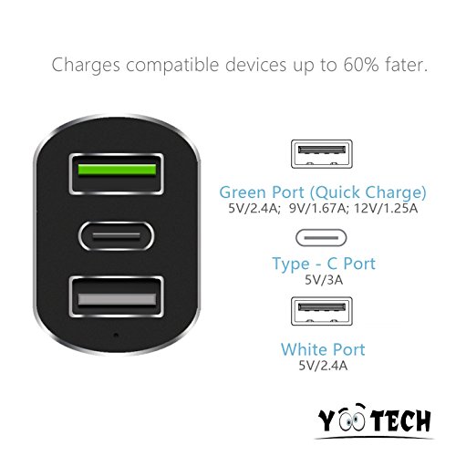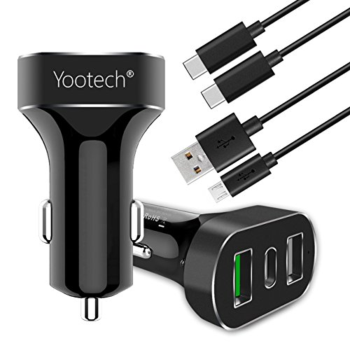 Type C Car Charger,Yootech 42W Car Charger (3-Port) with Type C ,Quick Charge, Standard USB Port,for LG G5,Nexus 5X/6P,HTC 10 and Other Device[Include Type C and Micro USB Cable]